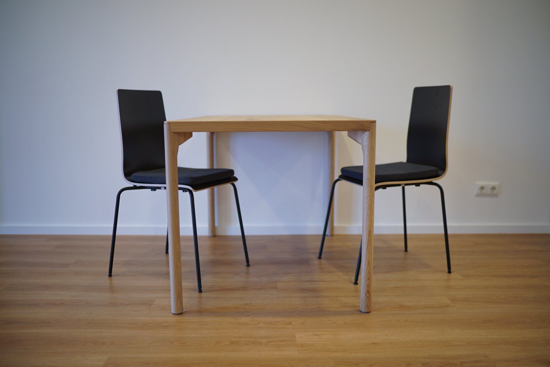 Neben einem Tisch, Stühle und einem großen Kleiderschrank mit Garderobe, befindet sich auch in jedem Apartment ein Samsung Smart-TV. Das Boxspringbett entspricht Hotelstandards und hat eine 25cm hohe Matratze.